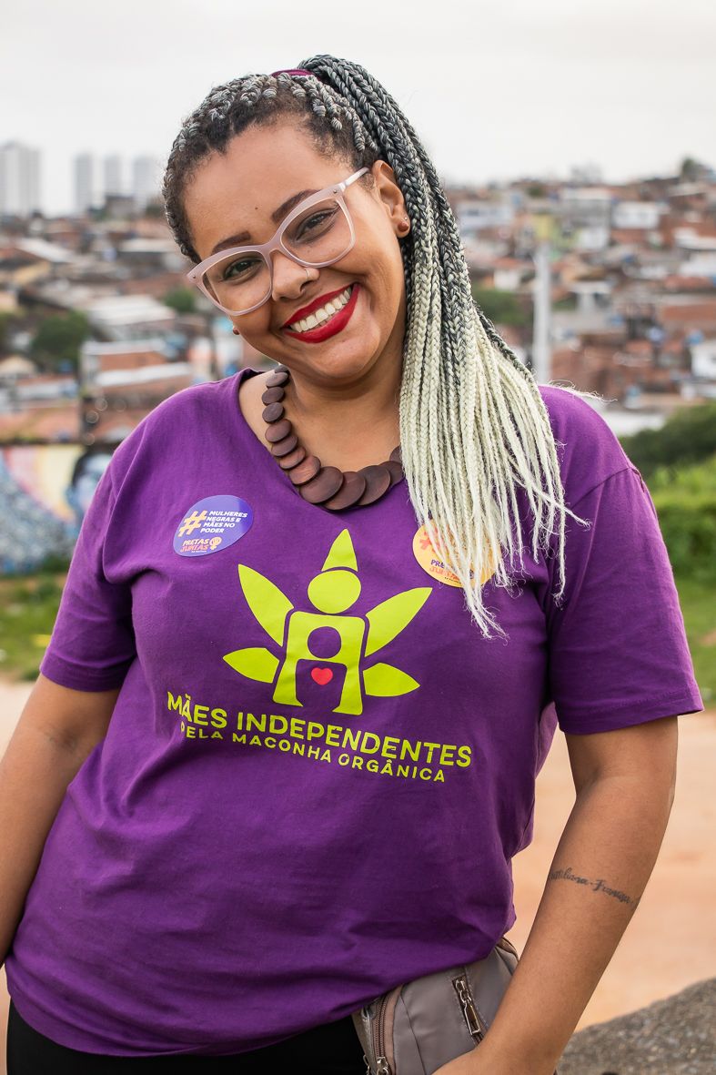 Elaine Cristina, feminista, antiproibicionista, mãe solo preta e periférica, ativista pelo direito do cultivo da cannabis, defensora dos direitos humanos, 39 anos, sou da periferia de Roda de Fogo, mãe de João Pedro de 11 anos, uma criança atípica com patologia rara HEMIMEGALENCEFALIA, construo o coletivo Mães Independentes pelo direito ao alto cultivo da cannabis como mobilizadora e articuladora, construo a Marcha da Maconha Recife e estou junto como conselheira no COMPAD-RECIFE representando a marcha da maconha. Primeira suplente a camara de vereadores do Recife pelo PSOL e candidata a deputada estadual pelo coletivo Pretas Juntas.